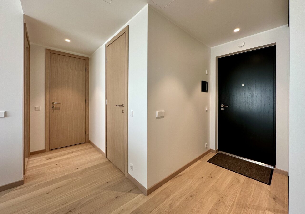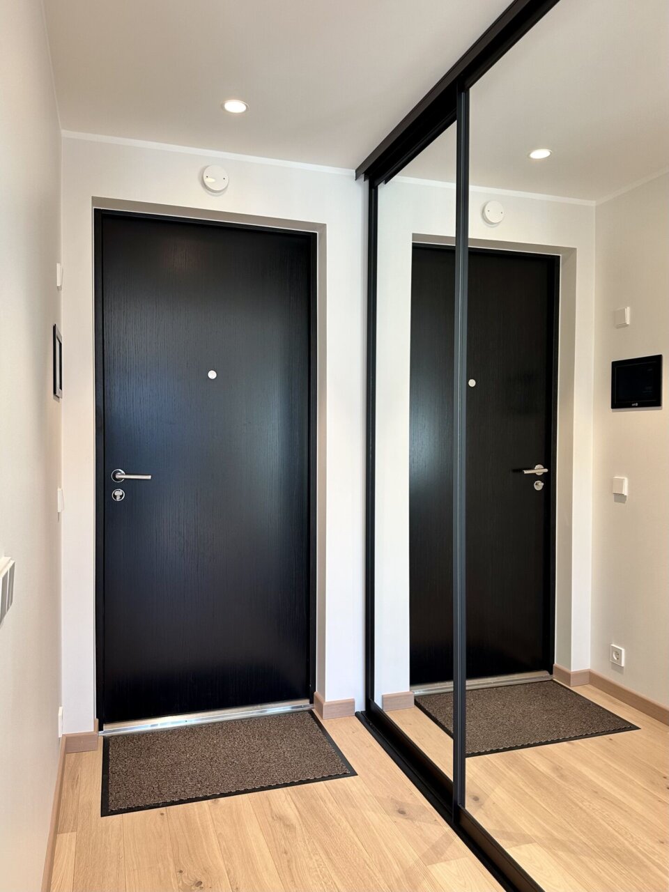 Optimaalse suurusega esikus on kõik nagu vaja: leiab lükandustega mahuka kapi ja seinalt Targa Kodu juhtpaneeli.
