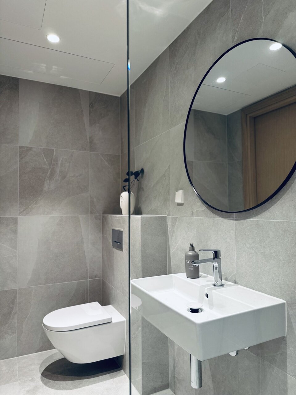Avar ruum kvaliteetse santehnikaga. Tugev ja kindel klaasseinaga dušinurk.