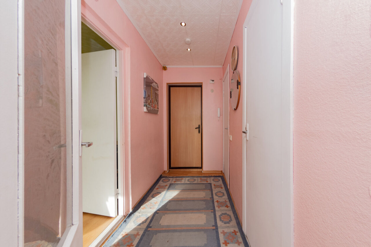 Seinad on heledates toonides, põrandat on kaetud laminaatparketiga.