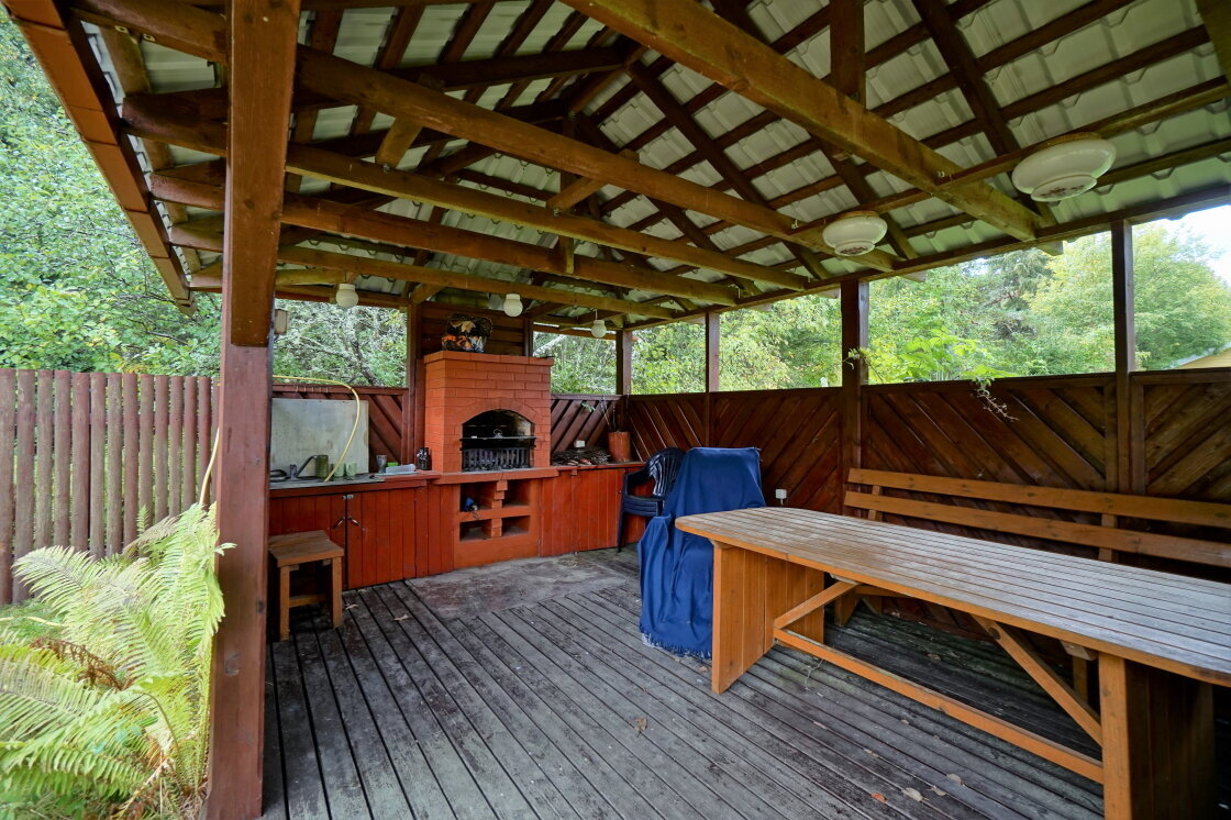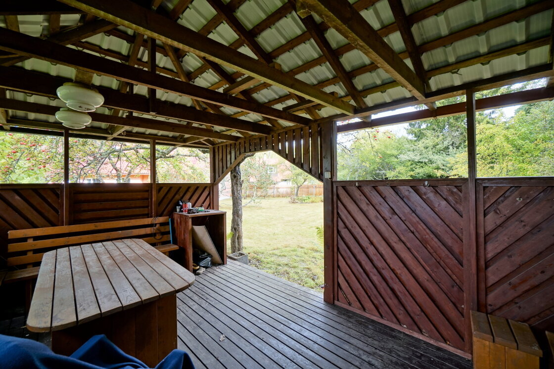 Korralik hoov, aiaga eraldatud. Maja taga grillinurk väliköögiga ja kuur puude ladustamiseks. Olemas on erinevad viljapuud. Piisavalt ruumi ja rohelust. Suvisel perioodil tuleb vesi tsentraalsest puurkaevust, talvisel ajal salvkaevust. Lokaalne kanalisatsioon on imbväljakuga septik.