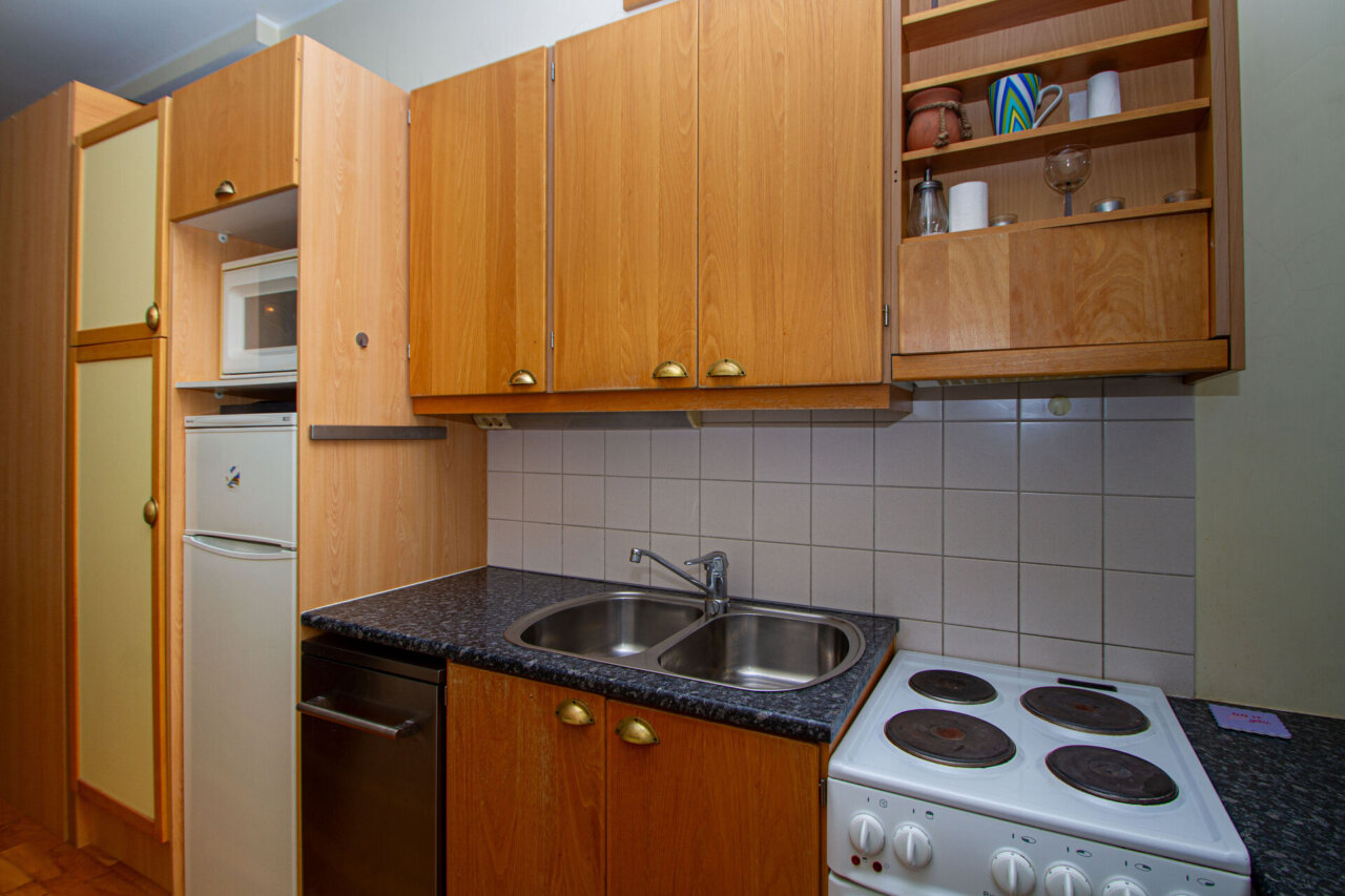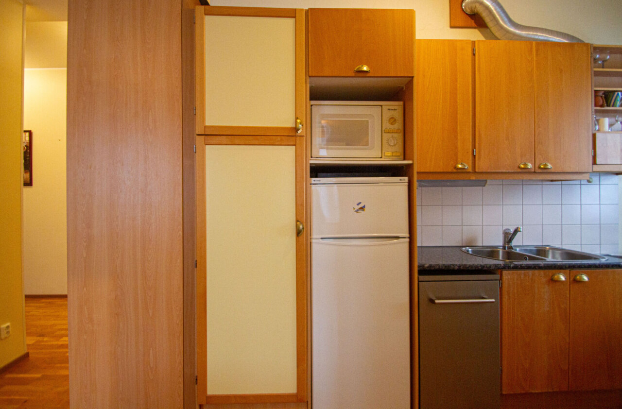Paigaldatud köögimööbel koos elektripliidi ja külmikuga