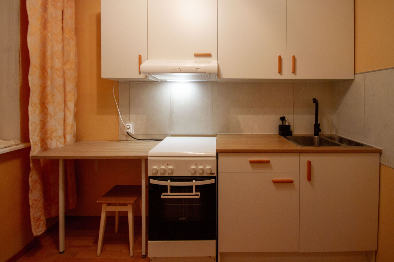 — Paigaldatud on uus köögimööbel, olemas vajalikud nõud.